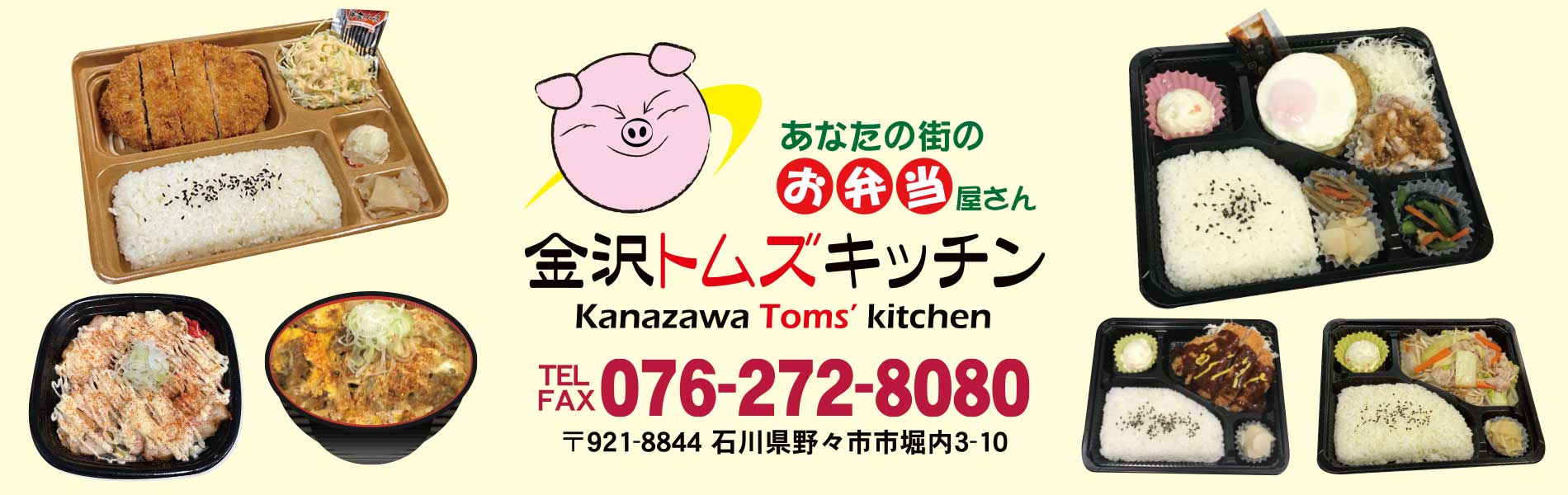 金沢トムズキッチンは、石川県野々市市を拠点に、日替わり弁当・定番弁当・企業向け弁当の配達を行う地域密着のお弁当店です。
